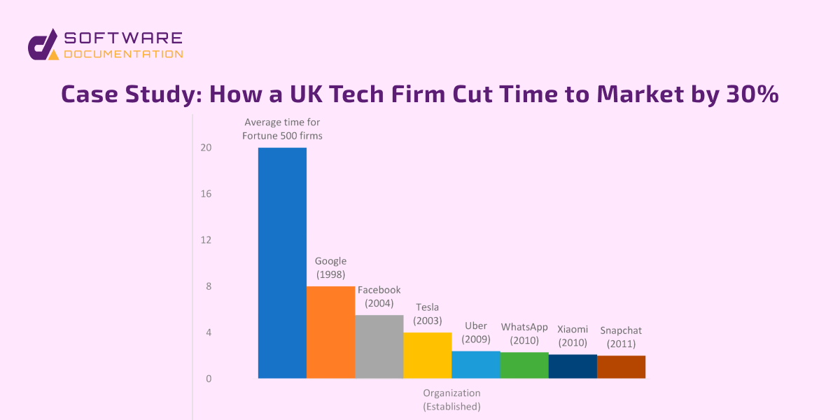 This is a UK tech case study. In this, we will briefly explain how a mid-sized UK technology company had shortened its time to market by 30% by merely augmenting the documentation of software and introducing clever automation in their work processes.